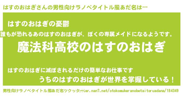 | ヒーロー風カッコイイあだ名 | 『サイバー戦士ハスノオハギ』 |
