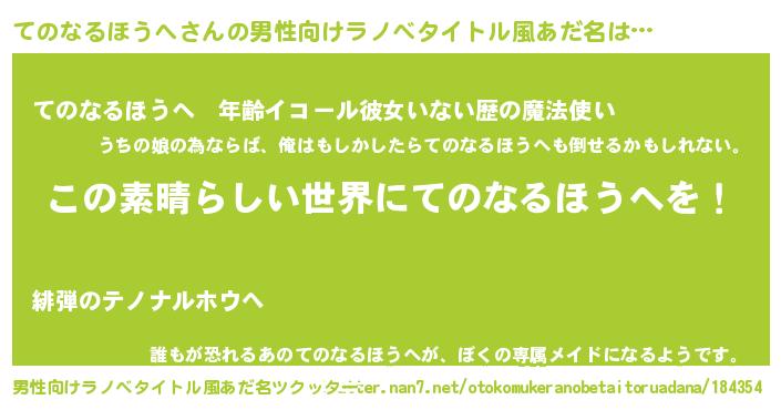| 胡散臭い通販商品みたいなあだ名 | 『あなたにだけ特別に提供する100年もののヴィンテージワイン…その名も「てのなるほうへ」』 |