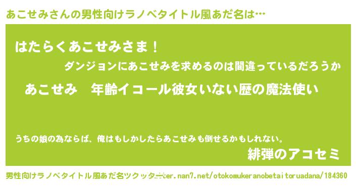 | 胡散臭い通販商品みたいなあだ名 | 『全米が絶賛したサプリメント…その名も「あこせみ」』 |