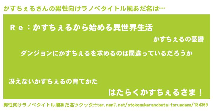 | 女子向けラノベタイトル風あだ名 | 『かすちぇるは平凡を望む』 |