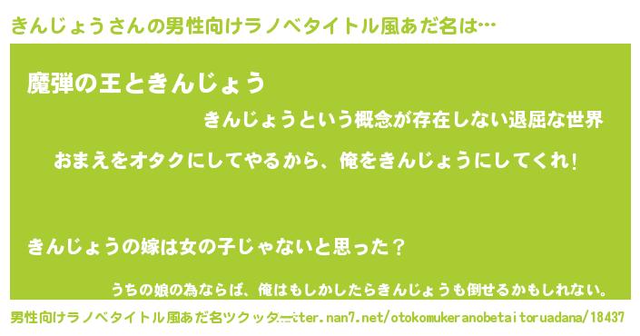 | ヘコむあだ名 | 『豆乳』『きんじょう(小並感)』 |