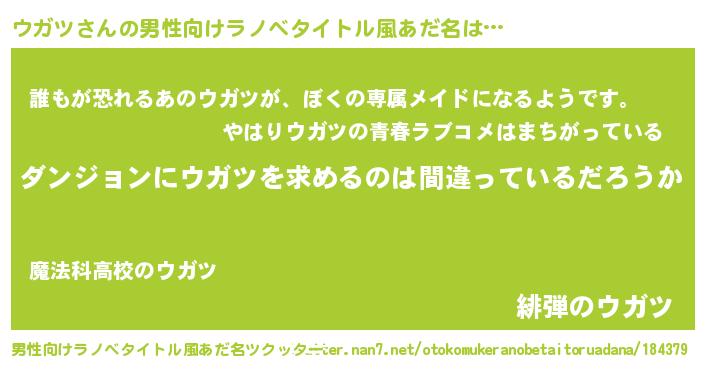 | 胡散臭い通販商品みたいなあだ名 | 『信頼と実績のペンダント…その名も「ウガツ」』 |