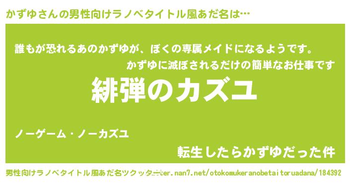 | 胡散臭い通販商品みたいなあだ名 | 『絶対に幸福をもたらす健康食品…その名も「かずゆ」』 |