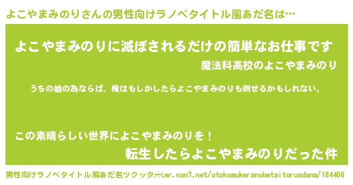 | ファンタジー風あだ名 | 『エターナルヨコヤマミノリー』 |