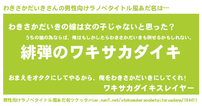 | ヒーロー風カッコイイあだ名 | 『暗黒騎士ワキ』『ネオワキサカダイキ』 |