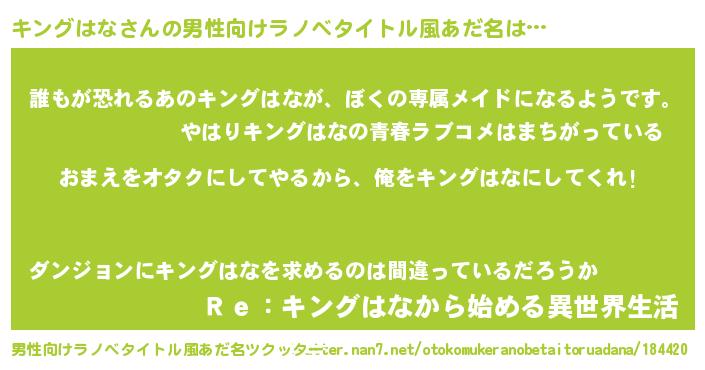 | 胡散臭い通販商品みたいなあだ名 | 『お金では代えられないイリジウム磁石…その名も「キングはな」』 |