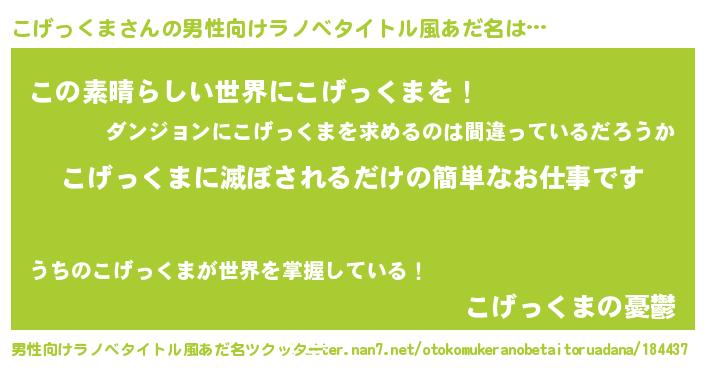 | 意味不明あだ名 | 『住所不定無職こげっくま(41歳)』 |