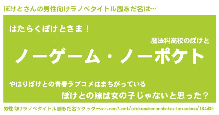 | 女子向けラノベタイトル風あだ名 | 『死神ぽけとの再婚』『ぽけと様がみてる』 |