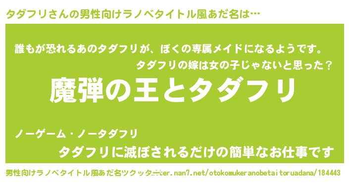 タダフリさんの男性向けラノベタイトル風あだ名をツクッター!