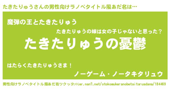 | 胡散臭い通販商品みたいなあだ名 | 『モテモテ間違いなし水晶球…その名も「たきたりゅう」』 |