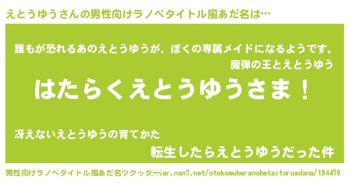 | ヘコむあだ名 | 『えとうゆう(小並感)』『豆乳』 |