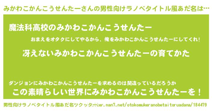 | ヒーロー風カッコイイあだ名 | 『サイバー戦士ミカワコカンコウセンター』 |