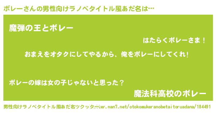 | 女子向けラノベタイトル風あだ名 | 『ボレー夫妻のなれそめ』 |