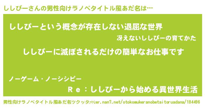 | 胡散臭い通販商品みたいなあだ名 | 『来世でも幸せになれる水素水…その名も「ししぴー」』 |