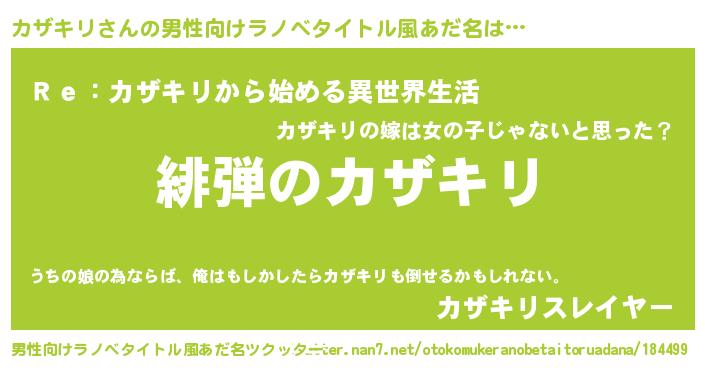 | 女子向けラノベタイトル風あだ名 | 『シンデレラカザキリ家の靴箱館』 |