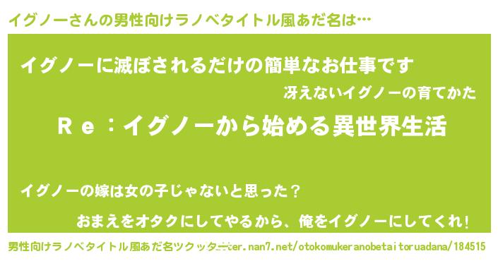 | 女子向けラノベタイトル風あだ名 | 『イグノーストレイドッグス』 |