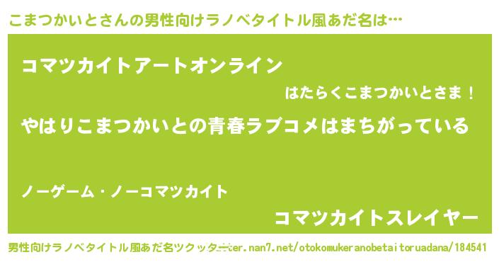 | 女子向けラノベタイトル風あだ名 | 『こまつかいとの雑貨屋さん』 |