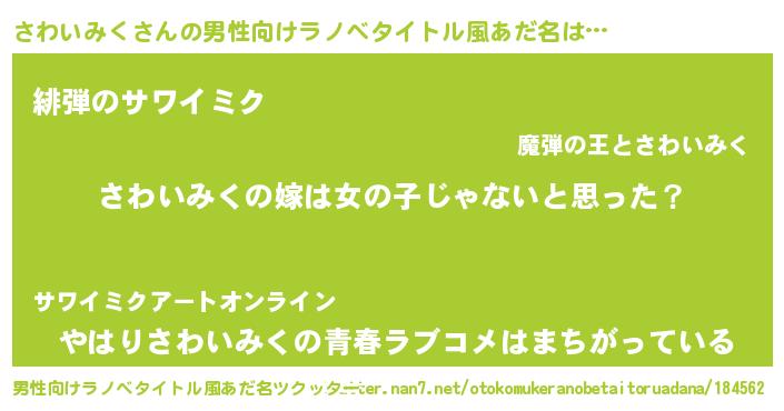 | 女子向けラノベタイトル風あだ名 | 『さわいみく様がみてる』 |
