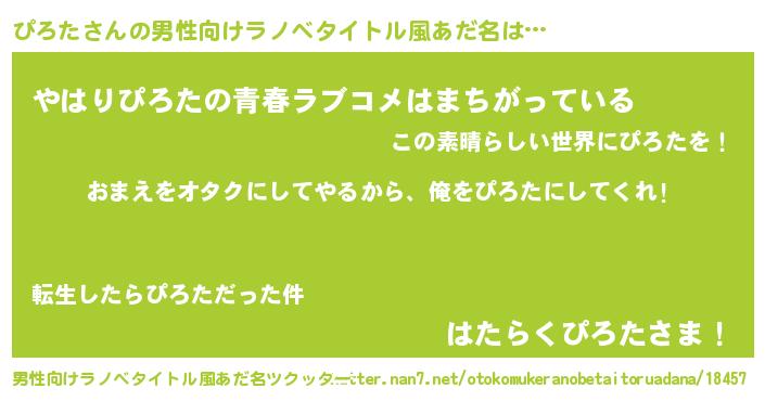 | ヒーロー風カッコイイあだ名 | 『正義の使者ぴろた』『仮面ピロダー』 |