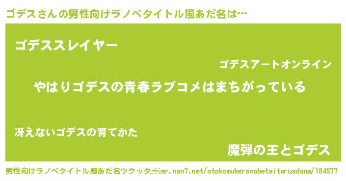 | 女子向けラノベタイトル風あだ名 | 『ゴデスの雑貨屋さん』 |
