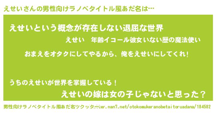 | ヘコむあだ名 | 『えせい(笑)』『えせを』『レバニラ』 |