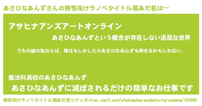 | 胡散臭い通販商品みたいなあだ名 | 『運命の人と巡り会える高級そうな壺…その名も「あさひなあんず」』 |