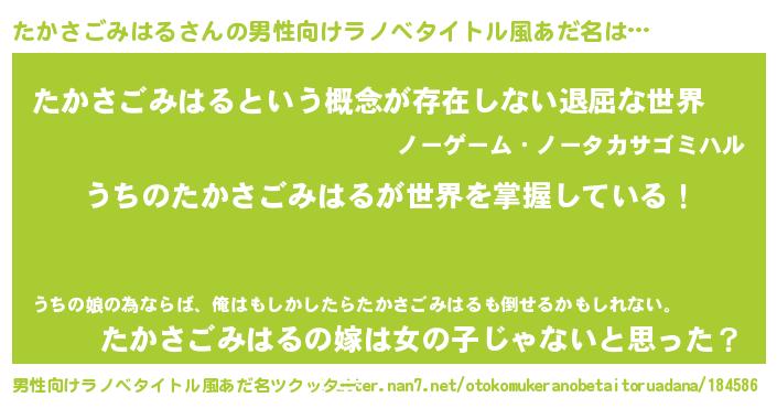 | 女子向けラノベタイトル風あだ名 | 『男装たかさごみはるの憂鬱な任務』 |