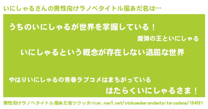 | 女子向けラノベタイトル風あだ名 | 『異世界で失敗しない100のいにしゃる』 |