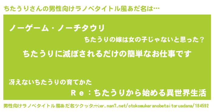 | ヒーロー風カッコイイあだ名 | 『愛の使者ちたうり』『最強戦士チタウリ』 |