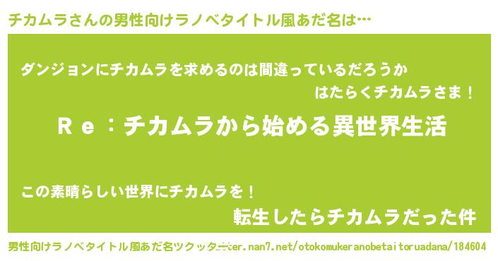 | 女子向けラノベタイトル風あだ名 | 『チカムラストレイドッグス』 |