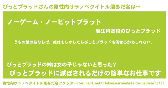| 女子向けラノベタイトル風あだ名 | 『ぴっとブラッド伯爵の花嫁』 |