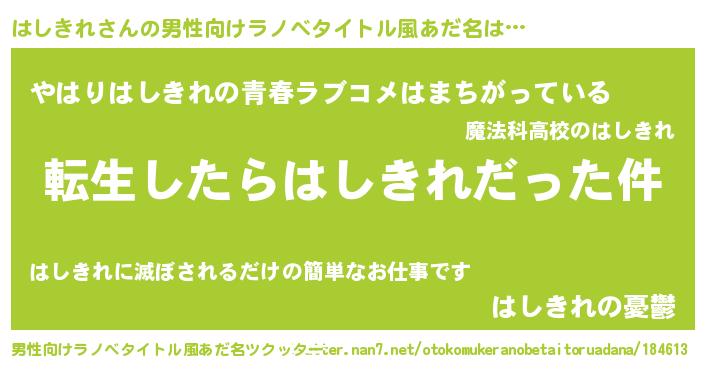 | 意味不明あだ名 | 『なめこ科はしきれ属』『自称はしきれ』 |