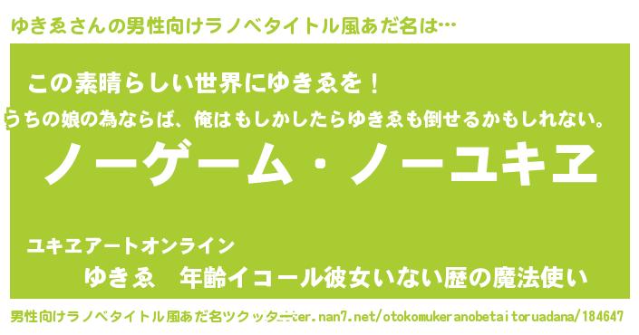 | 女子向けラノベタイトル風あだ名 | 『死神ゆきゑの再婚』『ゆきゑの婚約者』 |