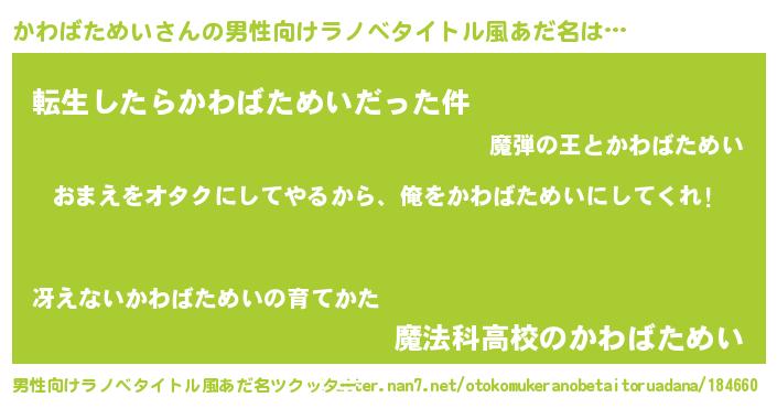 | 女子向けラノベタイトル風あだ名 | 『かわばためい恋絵巻』 |