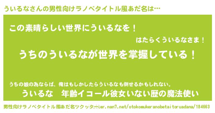 | 意味不明あだ名 | 『住所不定無職ういるな(81歳)』 |