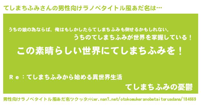 | 意味不明あだ名 | 『住所不定無職てしまちふみ(10歳)』 |
