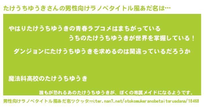 | 女子向けラノベタイトル風あだ名 | 『たけうちゆうきは平凡を望む』 |