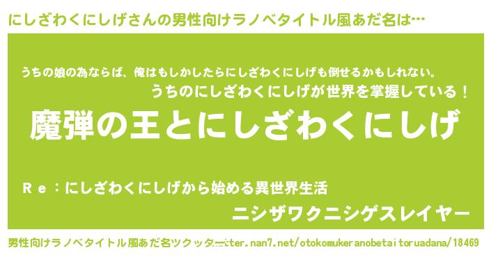 | ヒーロー風カッコイイあだ名 | 『仮面ニシダー』『天弓騎士ニシ』 |