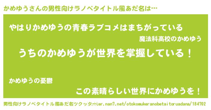 | 女子向けラノベタイトル風あだ名 | 『男装かめゆうの憂鬱な任務』 |