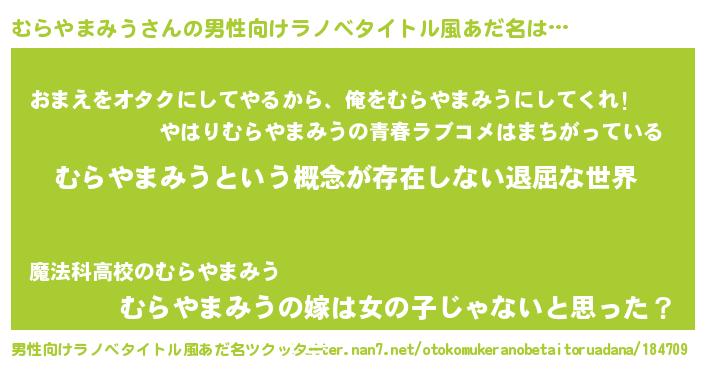 | 胡散臭い通販商品みたいなあだ名 | 『来世でも幸せになれる水素水…その名も「むらやまみう」』 |