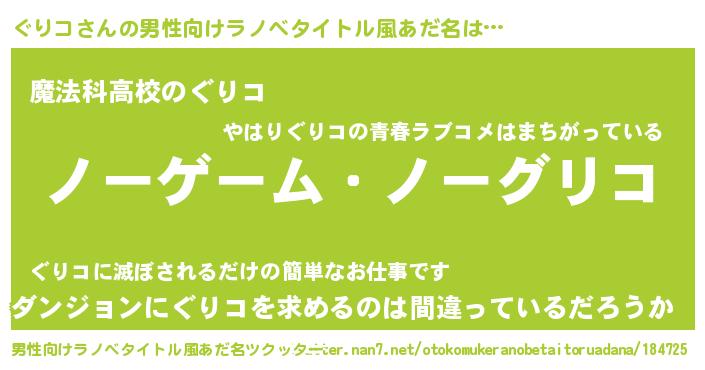 | 女子向けラノベタイトル風あだ名 | 『死神ぐりコの再婚』 |