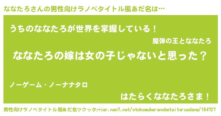 | ヒーロー風カッコイイあだ名 | 『天弓騎士ナナ』『仮面ナナダー』 |