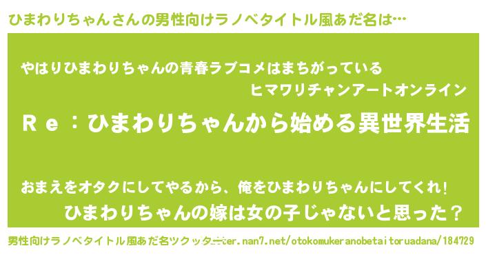 | 女子向けラノベタイトル風あだ名 | 『闇のひまわりちゃん』 |