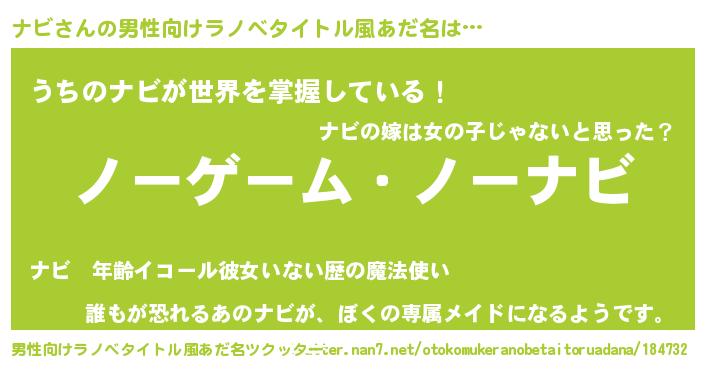 | 女子向けラノベタイトル風あだ名 | 『死神ナビの再婚』『ナビ様がみてる』 |