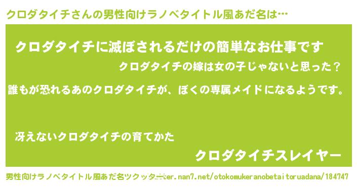 | 女子向けラノベタイトル風あだ名 | 『クロダタイチの契約王妃』 |