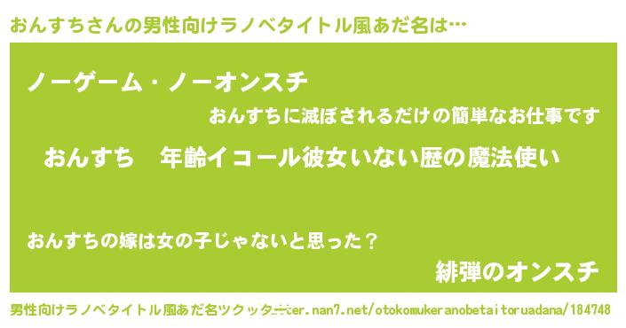 | 女子向けラノベタイトル風あだ名 | 『おんすちの玉の輿計画!』 |