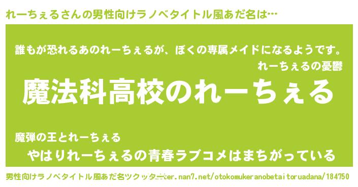 | ヘコむあだ名 | 『れーちぇる(笑)』『なまこ酢』 |