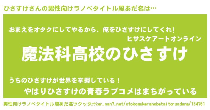 | 女子向けラノベタイトル風あだ名 | 『ひさすけなんてお断りですっ。』 |