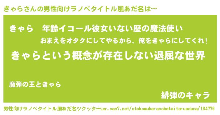 | 女子向けラノベタイトル風あだ名 | 『きゃらの契約王妃』 |