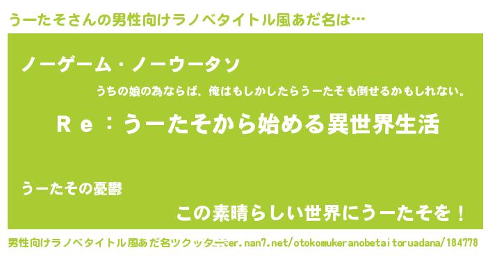| 胡散臭い通販商品みたいなあだ名 | 『テレビで話題の高麗人参…その名も「うーたそ」』 |